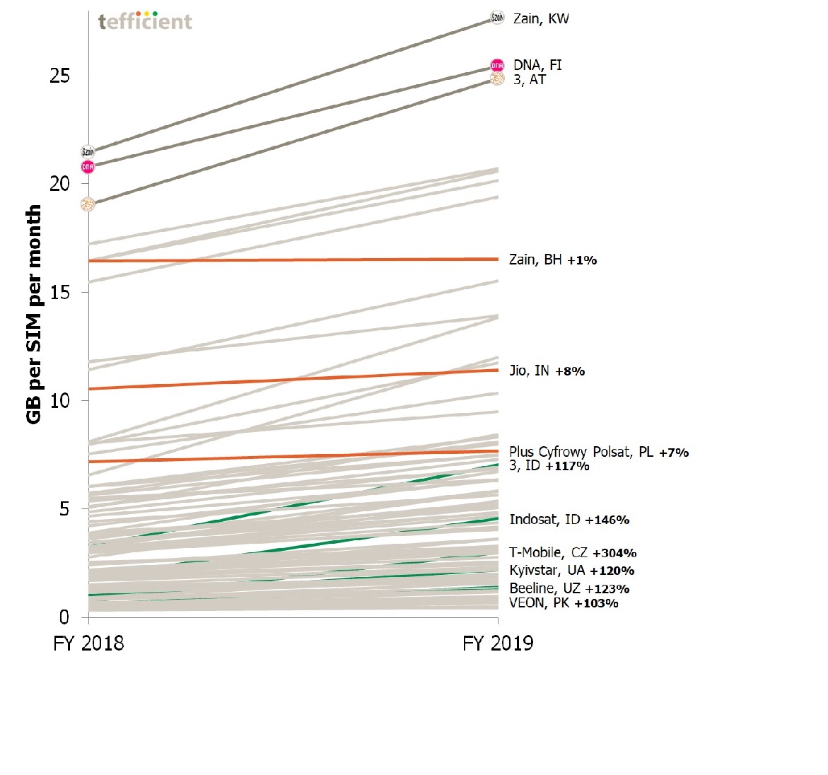 Kuwaitilaisen Zainin lisäksi DNA pysyi myös vuonna 2019 maailman kärkijoukoissa mobiilidatan käyttömäärissä liittymää kohden, kertoo kansainvälisen tutkimusyhtiö Tefficientin tuore raportti.