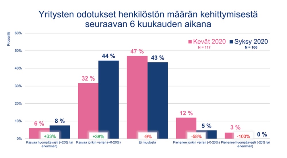 Yli puolet suomalaisista ohjelmistoyrityksistä palkkaa koronasta huolimatta jo lisää työntekijöitä, vaikka äskettäin pelialalta kuului vielä tietoja henkilövähennyksistä. Ohjelmisto- ja e-business ry:n uunituore selvitys kertoo lähes 70 prosenttia ohjelmistoyrityksistä kasvavan ja mikä parasta, yli puolet palkkaa lisää työntekijöitä.