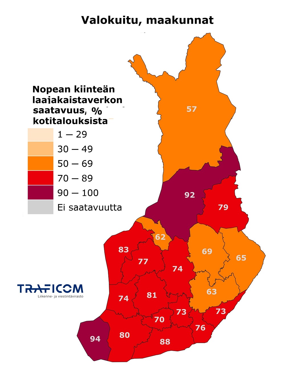 ”Alueellisesti erot ovat vielä edelleen suuria. Itä- ja Pohjois-Suomessa kiinteän nettiyhteyden saatavuustilanne on selvästi heikompi kuin muualla maassa”, kertoo johtaja Lasse Laine Traficomista.
