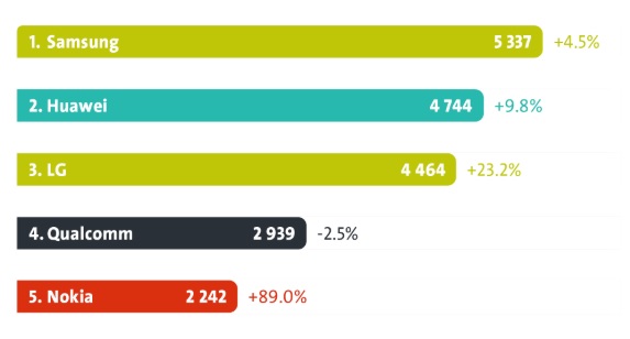 Suomi teki viiime vuonna Nokian kanssa ennätyksen eurooppapatenttien hakemusten määrässä, kun kaikkiaan Euroopan patenttivirastoon (EPO) jätettiin yhteensä 3 457 patenttihakemusta. Nokia lisäsi hakemuksiaan lähes 90 prosenttia ja nousi viidenneksi Samsungin, Huawein, LG:n ja Qualcommin jälkeen.