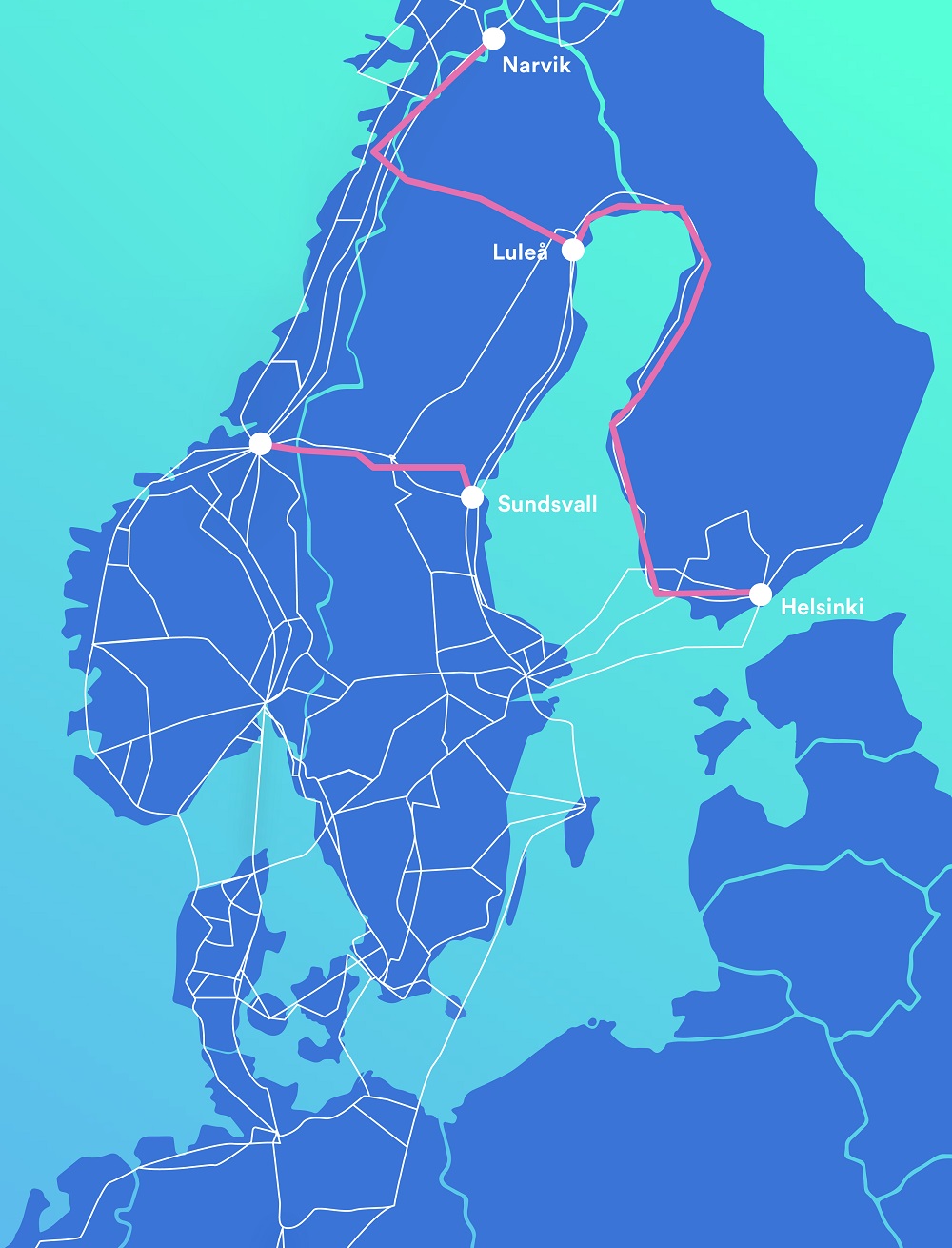 Global Connectin uusin DWDM-laajennus tuo uusia maantieteellisesti eriytettyjä yhteysreittejä keskeisten kaupunkien, kuten Luulajan, Narvikin, Sundsvallin, Trondheimin ja Helsingin välille. kasvattaa Pohjoisen alueen tiedonsiirtokapasiteettia ja tuo