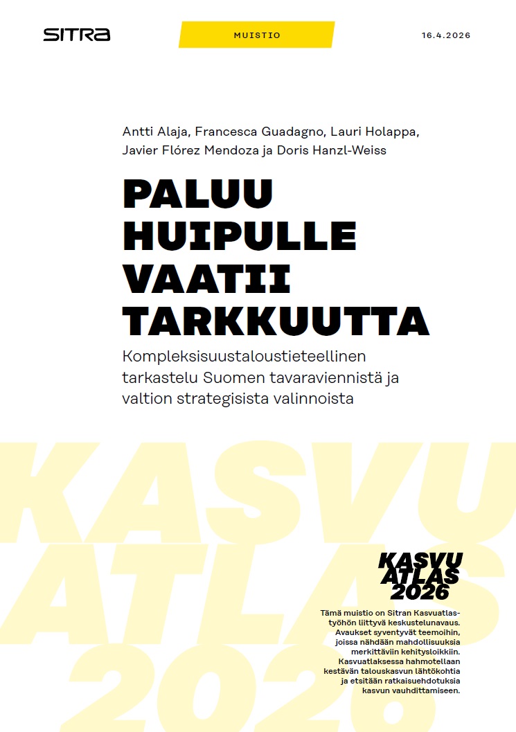 Kompleksisuustaloustieteeseen pohjaava analyysi on ensimmäinen laatuaan Suomen taloudesta ja osa Sitran Kasvuatlas-työtä. Selvityksessä ei oteta laajemmin kantaa siihen, millaisiin toimenpiteisiin valtion olisi syytä ryhtyä kasvun kannalta strategisten alojen edistämiseksi.